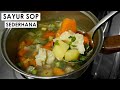 Kemudian bertahap sayuran yang paling keras, mulai dari wortel, kentang tambahkan bumbu tumisan. Masukkan buncis, lalu jamur aduk rata hingga semua sayur matang. Beberapa menit sebelum dimatikan kompor, tambahkan daun sop, garam himalayan coconut sugar, dan nutritional yeast. Selanjutnya masukkan semua sisa bahan, kecuali bawang merah goreng dan daun seledri, tunggu sampai mendidih, cicipi rasa, angkat. Terakhir beri taburan bawang merah goreng dan daun seledri. Resep sayur sop yang lezat tentu bisa menjaga imunitas tubuh karena mengandung sayuran yang sehat. Beragam jenis bahan makanan lain juga bisa ditambahkan ke dalam resep sayur sop, hal ini tentu akan membuat sayur sop menjadi lauk nikmat makan siang atau malam. Lihat resep versi rasabunda ; Rebus air hingga mendidih kemudian masukkan bawang putih geprek.